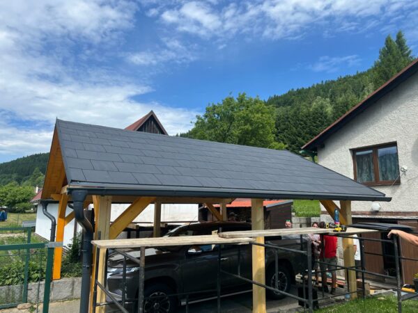 - Lepší akustika než plech — výrazné utlumení hluku deště a lepší komfort v obytných prostorech.